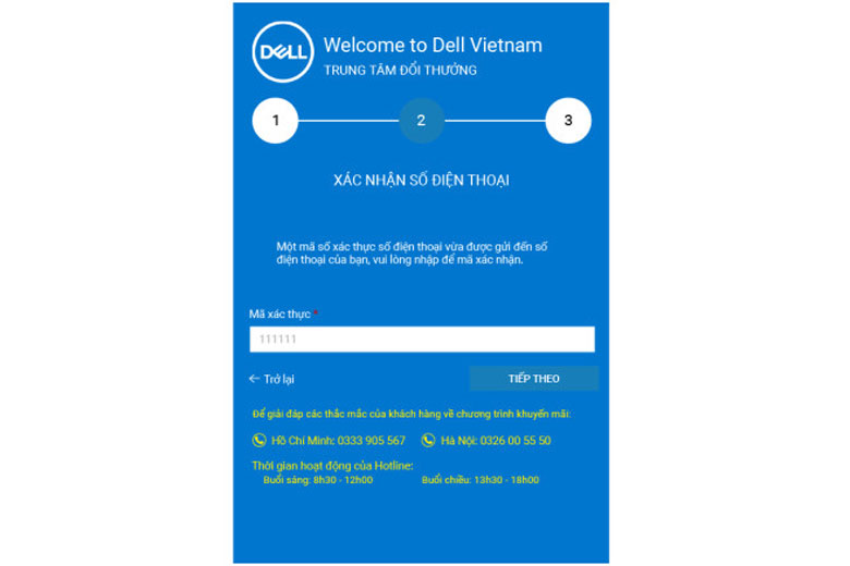 * Bước 5: Sau khi khách hàng thực hiện các bước trên để đăng kí thông tin trên website www.doiquadell.com, bộ phận dịch vụ khách hàng của DellTM kiểm tra tính hợp lệ của thông tin trong vòng 12 (mười hai) giờ làm việc: