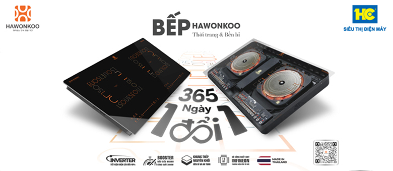 Chương trình "1 đổi 1 trong 365 ngày" từ Hawonkoo là cơ hội vàng để sở hữu bếp điện chất lượng với cam kết bảo hành vượt trội. Đổi trả dễ dàng, hoàn tiền nhanh chóng – mua sắm tại Điện Máy HC thật an tâm!