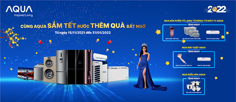 Từ ngày 15/11/2021 đến 31/01/2022, Siêu thị điện máy HC phối hợp cùng nhãn hàng AQUA triển khai chương trình "Cùng AQUA sắm Tết - Rước thêm quà bất ngờ" với nhiều ưu đãi, khuyến mãi cực khủng. Nhận ngay quà tặng gia dụng khi mua tivi, tủ lạnh, tủ đông, máy lạnh, máy giặt thương hiệu AQUA cho nhà thêm gắn kết. Khám phá ngay chi tiết chương trình để không bỏ lỡ những món quà giá trị này nhé!