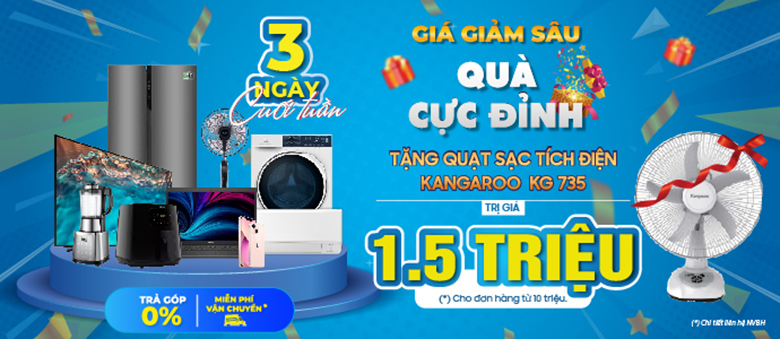 - Tặng quạt sạc Kangaroo KG735 cho đơn hàng từ 10 triệu
