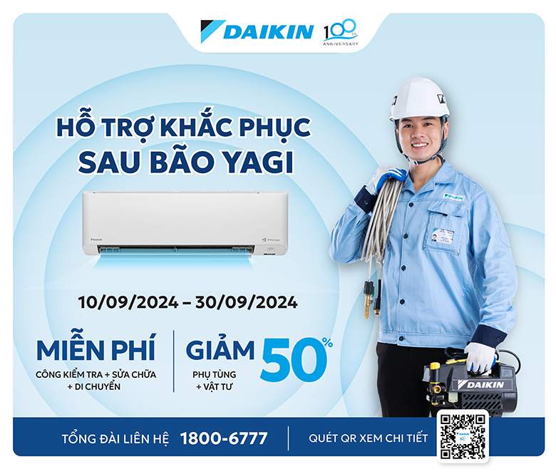 Cơn bão Yagi (bão số 3) đã gây ra những thiệt hại nghiêm trọng cả về người và tài sản tại nhiều tỉnh thành miền Bắc. Daikin Vietnam xin gửi lời chia sẻ sâu sắc đến Quý Khách Hàng đang gặp khó khăn do hậu quả của cơn bão để lại. Với mong muốn được đồng hành cùng Quý Khách Hàng trong quá trình khắc phục sau bão, Daikin Vietnam xin trân trọng triển khai chương trình "Hỗ Trợ Khắc Phục Sau Bão Yagi ".