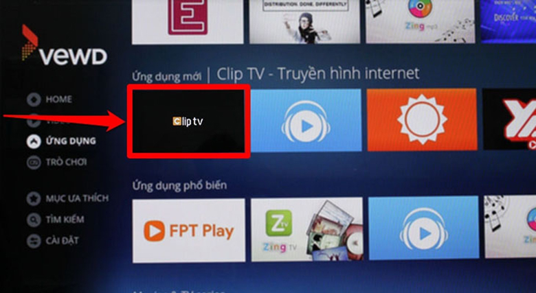 Bước 1: Ở màn hình ứng dụng bạn chọn vào ứng dụng ClipTV.