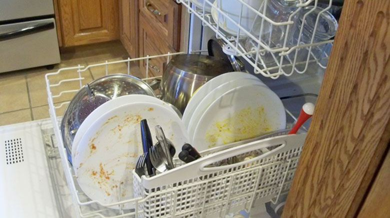 - Không đặt quá nhiều chén đĩa vào 1 ngăn đựng, chúng dễ bị rơi và làm nghẽn nhánh nước, máy bơm.