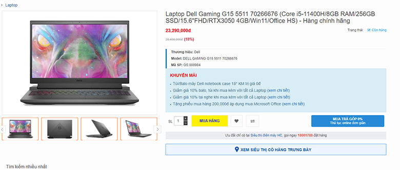 Dell Gaming G15 5511 là mẫu laptop gaming tầm trung của Dell có thiết kế nổi bật phá cách mới mẻ, hiệu năng máy khá ổn và mượt mà khi trải nghiệm trên các thể loại game online eSport hiện nay, máy trang bị viên pin khá lớn cho thời lượng pin dài và bền. Điểm hạn chế ổ cứng thấp 256GB, độ phủ màu bình thường bù lại màn hình máy được cấp chứng nhận ánh sáng xanh thấp giúp hạn chế gây mỏi mắt.