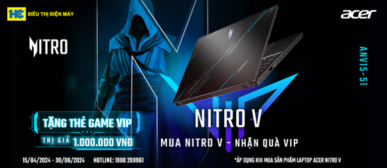 a) Trong thời gian diễn ra chương trình, Khách hàng khi mua Laptop Gaming Acer Nitro V ANV15-51 sẽ được đăng ký thông tin để nhận VIP Code nạp Game tổng trị giá 1.000.000 VNĐ (500.000 VNĐ Zing Card – áp dụng cho các tựa game từ nhà phát hành VNG & 500.000 VNĐ Garena Card – áp dụng cho các tựa game từ nhà phát hành Garena).