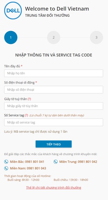 *Chính sách bảo mật*: Chương trình khuyến mãi không thể hoàn thành nếu không có thông tin khách hàng. Dữ liệu của khách hàng sẽ được công ty Dell bảo mật theo quy định *Tuyên bố về quyền riêng tư*. Để tìm hiểu thêm về cách Dell sử dụng và bảo vệ dữ liệu cá nhân của khách hàng, hãy truy cập vào: *Tuyên bố về Quyền riêng tư*.