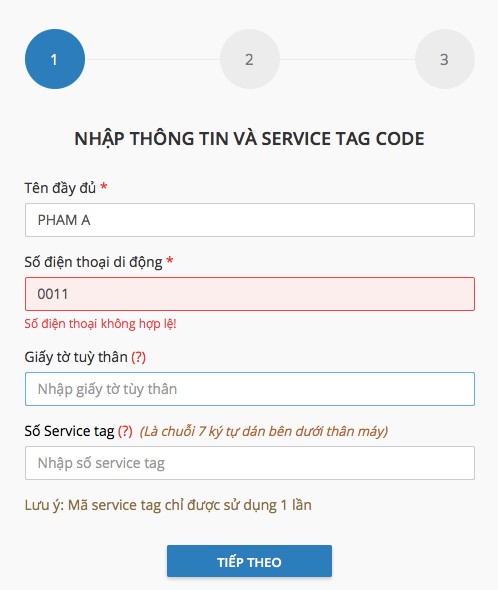 • Hệ thống yêu cầu người dùng đăng tải hình ảnh hoá đơn mua hàng hợp lệ. Hoá đơn mua hàng hợp lệ là hoá đơn tài chính có chứa sản phẩm tương ứng với Số Service Tag.