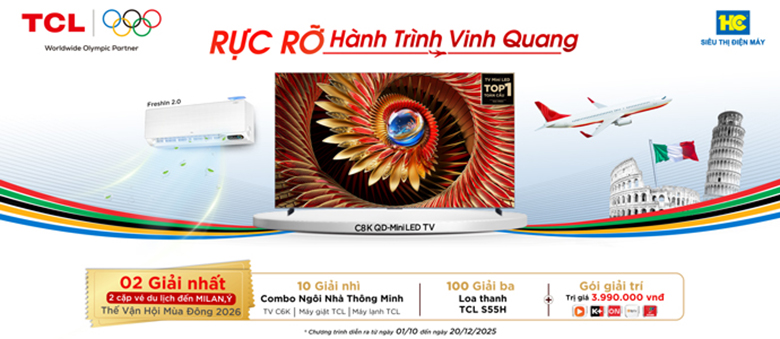 Cùng TCL đồng hành trên chặng đường tỏa sáng, tận hưởng những khoảnh khắc đỉnh cao và nhận ngay ưu đãi hấp dẫn chưa từng có. Chương trình khuyến mại đặc biệt “Rực Rỡ Hành Trình Vinh Quang Cùng TCL” mang đến cho bạn cơ hội sở hữu những sản phẩm công nghệ tiên tiến với quà tặng giá trị, giúp hành trình trải nghiệm thêm phần trọn vẹn và đáng nhớ.