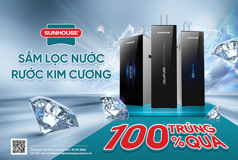 - Nội dung: Khách hàng mua bất kỳ sản phẩm Máy lọc nước RO nào của SUNHOUSE cũng có cơ hội trúng Kim cương, 100% tặng lõi lọc thô số 1 Sunhouse