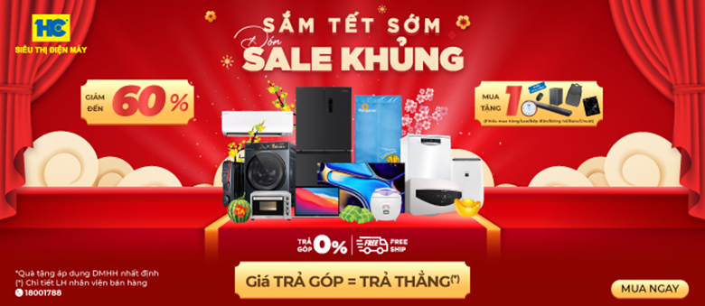 Từ ngày 16/01 - 31/01/2026, khi Quý khách hàng đến mua sắm tại Siêu thị Điện máy HC sẽ được hưởng ưu đãi giảm giá SỐC ĐẾN 60% và tận hưởng chính sách mua hàng trả góp lãi suất 0% siêu hấp dẫn. (Xem chi tiết danh sách sản phẩm áp dụng tại đây).