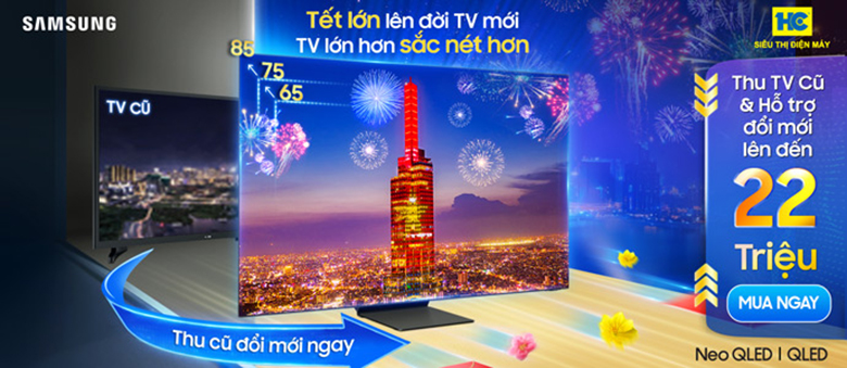 Tivi nhà bạn đã cũ có ít tính năng bạn muốn lên đời một chiếc tivi đời mới tích hợp nhiều tính năng hiện đại, màn hình lớn nhưng lại lo ngại vấn đề tài chính không cho phép. Hãy tham gia ngay chương trình "Tết lớn lên đời TV mới - Hỗ trợ đổi mới lên đến 22 triệu" tại Siêu thị Điện máy HC. Xem thể lệ chi tiết dưới đây để không bỏ lỡ cơ hội tuyệt vời này.