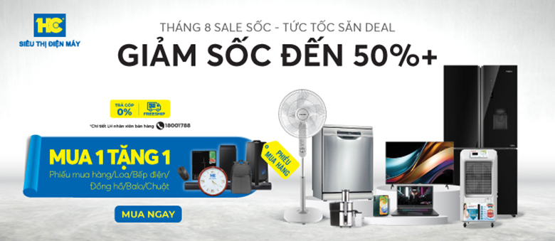 Từ ngày 01/8 - 14/8/2025 khi Quý khách hàng đến mua sắm tại Siêu thị Điện máy HC sẽ được hưởng ưu đãi giảm giá SỐC và tận hưởng chính sách mua hàng trả góp lãi suất 0% siêu hấp dẫn. (Xem chi tiết danh sách sản phẩm áp dụng tại đây).