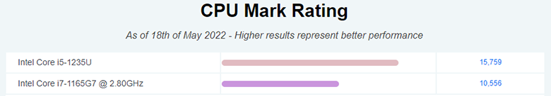 Đây mới là điểm mình thấy đáng giá nhất trên Aspire 5 A515 gen 12 này, máy được trang bị Vi xử lý Intel Alder lake i5 1235U mới nhất hay còn gọi là Gen 12 với 10 lõi, 12 luồng xung nhịp lên từ 3.3 Ghztới 4.4Ghz có thể hoạt động đồng thời trên 12 luồng, kết hợp với 8GB Ram cùng card đồ họa Iris Xe cho thử nghiệm trên Cinebench cho kết quả lõi đơn và đa lõi VXL i5 1235U cho hiệu năng hoàn toàn vượt trội, hiệu suất đã lõi cao hơn 48% so với các mẫu so sánh Asus Vivobook A515 i7 1165G7, Thinkbbook 13 i5 1135G7.