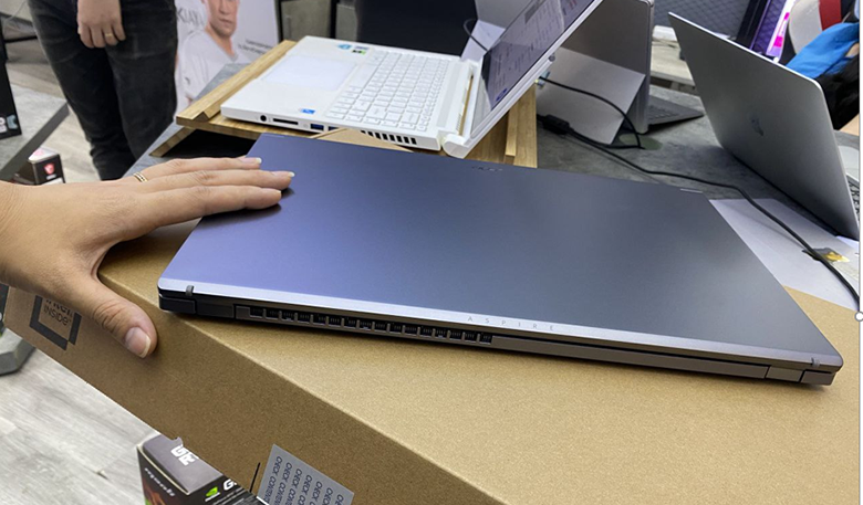 Đầu tiên đập vào mắt mình là Aspire 5 A515-57 này có thiết kế khá gọn nhẹ, mặc dù máy có thiết kế màn hình lớn 15.6 nhưng cảm giác máy khá nhẹ so với kích thước chỉ 1.46kg. Ngoài ra máy còn được thiết kế bằng chất liệu nhôm trông khá sang trọng cao cấp, mình chạm vào mà cảm giác mát lạnh cả tay, đi sâu vào bên trong viền màn hình máy khá mỏng, chỉ 17.95mm (thường là 19mm). Độ hoàn thiện Aspire 5 A515 57 khá cao, các góc bo tròn vuông vức do được cắt bằng máy không hề có vết gợn vốn chỉ có trên các dòng máy cao cấp như LG gram 2021 hay Macbook. Phải nói rằng Acer đã hoàn thiện hơn các mẫu sản phẩm của mình xuất sắc.