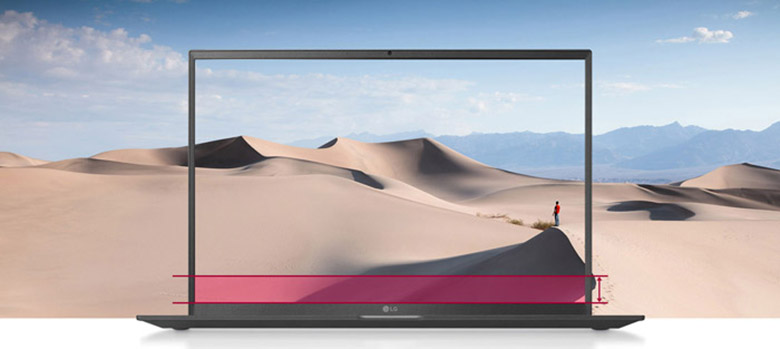 Laptop LG Gram 16Z90P-G.AH75A5 sở hữu màn hình tràn viền 16 inch rộng lớn cho bạn cảm giác như đang được hòa mình vào thế giới bên trong khung hình. Độ phân giải WQXGA (2560 x 1600 Pixel) cho hình ảnh hiển thị sắc nét, sống động với độ chi tiết cao, chữ viết rõ ràng. Màn hình 16:10 cùng viền siêu mỏng 4 chiều cho bạn trải nghiệm thị giác vô cùng ấn tượng, sống động, chân thực. Tỉ lệ 16:10 cho hình ảnh hiển thị Full màn hình, diện tích màn hình tăng 11% so với tỷ lệ 16: 9, giúp bạn xem thêm được nhiều thông tin hơn trên một trang mà không cần phải sử dụng thao tác cuộn.