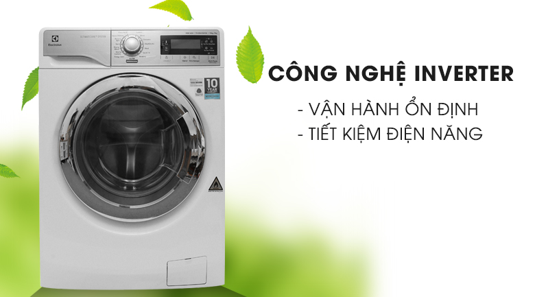 Công nghệ máy nén Inventer tiết kiệm điện năng vận hành êm ái Máy giặt sấy Electrolux EWW12853 được trang bị công nghệ biến tần Inverter cùng hệ thống dẫn động trực tiếp giúp máy giặt hoạt động ổn định và cực kỳ êm ái.Ngoài ra công nghệ Inventer còn giúp tiết kiệm điện năng và tiết kiệm nước hiệu quả cũng như bảo vệ các thiết bị máy móc, tăng tuổi thọ của sản phẩm.