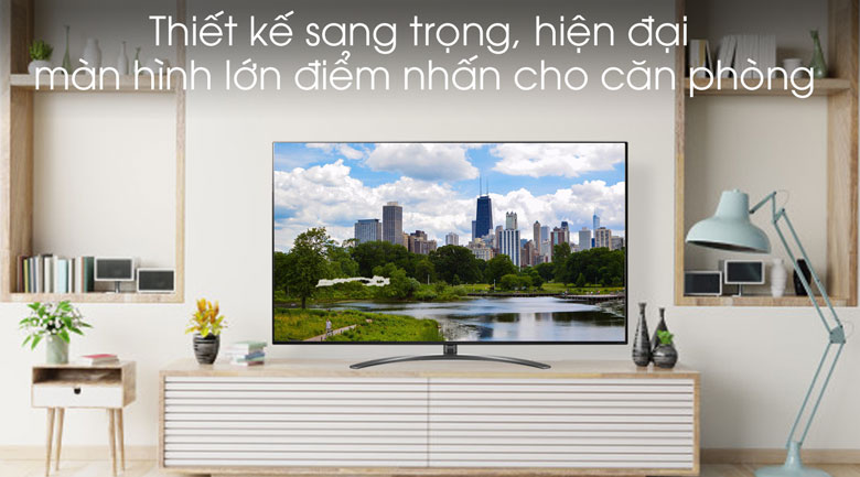 Smart Tivi LG 8K 75 inch 75SM9900PTA sở hữu thiết kế hiện đại cùng tông màu đen sang trọng hài hòa không gian nội thất trong căn phòng. Cùng với viền màn hình mỏng 0.5 cm, thậm chí còn mỏng hơn điện thoại iPhone X.