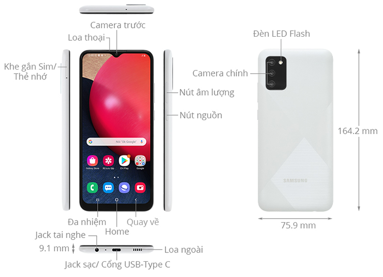Điện thoại Samsung Galaxy A02S 4GB/64GB Trắng - Hàng chính hãng