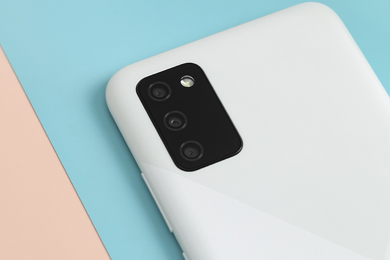 Samsung Galaxy A02S sở hữu cụm 3 camera sau đặt trong mô-đun hình chữ nhật gọn đẹp với camera chính có độ phân giải 13MP khẩu độ f/2.2, camera macro 2 MP và camera xóa phông 2 MP đi kèm đèn Flash chiếu sáng. Cụm camera có khả năng lấy nét nhanh, kiểm soát nhiễu và giữ chi tiết khá tốt ngay cả trong điều kiện ánh sáng yếu.