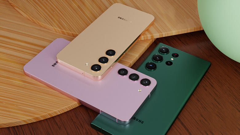 Những màu sắc tươi mới Kem, Đen, Xanh lá và Hồng tím là chất liệu mang đến sức sống đầy cảm hứng cho lớp vỏ kim loại của Samsung Galaxy S23.