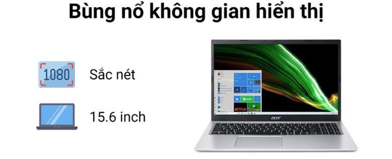 Laptop Acer Aspire 3 A315-58G-50S4 sở hữu màn hình 15.6 inch độ phân giải Full HD mang đến chất lượng hình ảnh chân thực, sắc nét. Viền màn hình mỏng 2 bên mở rộng không gian hiển thị cho hình ảnh trải rộng, nổi bật hơn đồng thời giảm đáng kể trọng lượng cho máy và giúp thân máy gọn gàng, thanh thoát hơn.