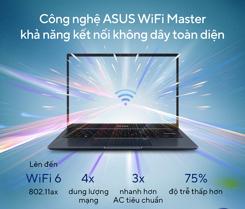 Với chuẩn kết nối lên tới WiFi 6 độ phân giải nhanh cùng công nghệ ASUS WiFi Master, Vivobook 15X nâng tầm kết nối không dây nhanh và ổn định.