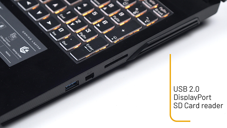 Bàn phím laptop có 15 màu đèn nền cài sẵn giúp bạn thao tác các phím chính xác hơn khi chơi game, làm việc trong môi trường thiếu sáng và bạn có thể thỏa sức thể hiện cá tính của mình với layout hợp lý. Bàn phím thiết kế hành trình phím sâu, độ nảy tốt cho các thao tác gõ phím êm ái, thoải mái hơn. Hàng phím số bên phải thuận tiện hơn khi cần tính toán, nhập liệu.