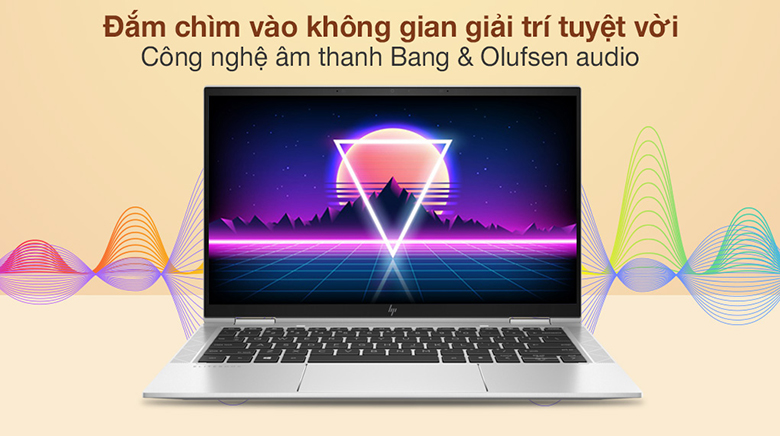 Laptop HP EliteBook X360 1030 G8 3G1C5PA sử dụng công nghệ âm thanh Bang & Olufsen audio đem đến chất âm trong trẻo, to rõ cùng khả năng lọc tiếng ồn cho bạn đắm chìm trong không gian âm thanh sống động, chân thực.