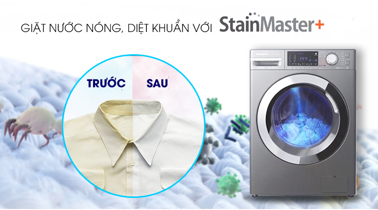 Với công nghệ giặt nước nóng StainMaster+, những vết bẩn cứng đầu ở trên cổ và tay áo, vết dầu,… sẽ được loại bỏ một cách đáng kể, tiết kiệm thời giặt đồ cho bạn.