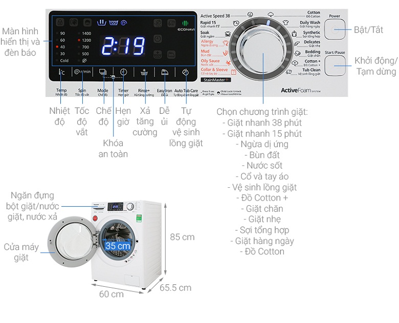Máy giặt Panasonic trang bị công nghệ StainMaster+ với nhiệt độ nước có thể lên đến 60 độ C không chỉ đánh bay vết bẩn cứng đầu mà nó còn tiêu diệt vi khuẩn gây hại, bảo vệ an toàn cho làn da của bạn và người thân trong gia đình.