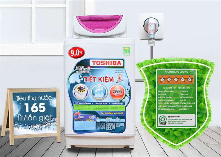 Tiết kiệm điện nước Chỉ với trung bình 165l/lần giặt cùng hệ thống thông minh tự cân chỉnh mực nước phù hợp với từng lượng đồ giặt, máy giặt Toshiba giúp tiết kiệm nước tối ưu cũng như tạo thời gian giặt giũ thích hợp. Ngoài ra máy giặt còn được chứng nhận 5 sao của bộ công thương về khả năng tiết kiệm điện năng.