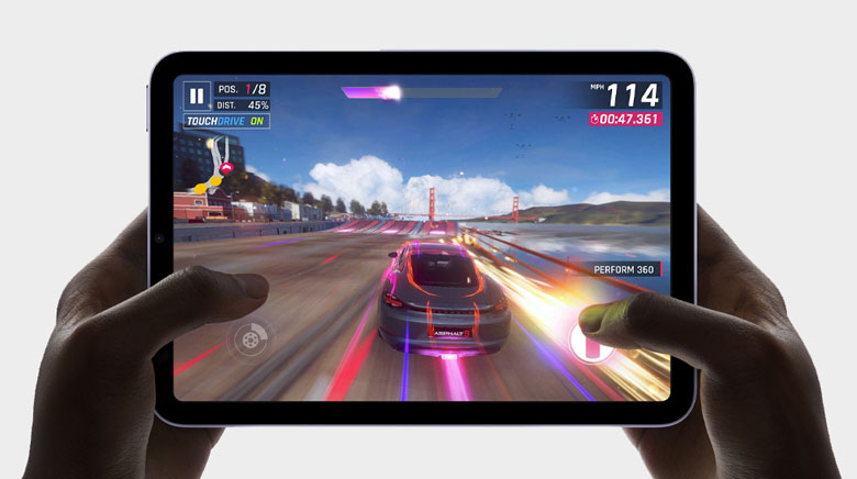 Máy tính bảng Apple iPad Mini 6 5G tích hợp con chip Apple A15 Bionic sản xuất trên tiến trình 5nm mới nhất. Con chip này cho sức mạnh CPU tăng hơn 40% và GPU được cải thiện hiệu suất hơn 80%. Giờ đây bạn có thể chỉnh sửa ảnh, biên tập video 4K, chơi game đồ họa cao với những pha chuyển cảnh mượt mà hay hàng loạt hiệu ứng đồ họa tuyệt đẹp, chạy đa nhiệm cực nhanh trên chiếc máy tính bảng nhỏ gọn.