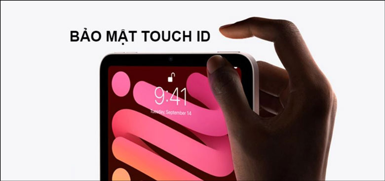 iPad Mini 6 5G được trang bị cảm biến vân tay Touch ID tích hợp vào phím nguồn cạnh trên giúp xác thực và mở khóa máy nhanh chóng đồng thời nâng cao tính bảo mật cho thiết bị cá nhân của bạn.