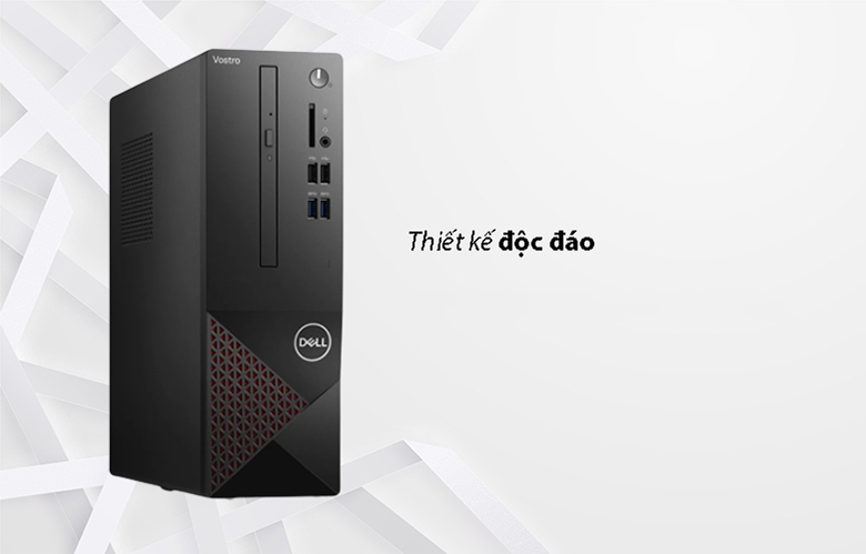 Máy tính để bàn Dell Vostro 3681ST PWTN11 thu hút với thiết kế đẹp mắt, màu đen sang trọng; kiểu dáng dạng khối hình chữ nhật đứng gọn nhỏ phù hợp với nhiều vị trí xếp đặt, có thể xếp gọn đẹp ở góc bàn làm việc. Máy tính có trọng lượng chỉ khoảng gần 4 kg dễ dàng di chuyển đến nhiều vị trí.