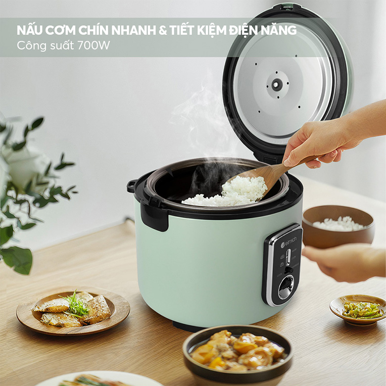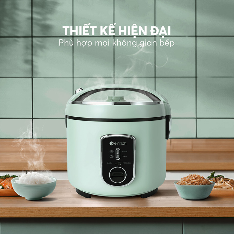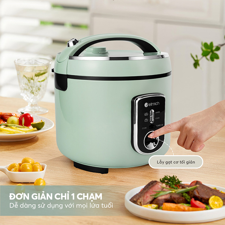 Nồi cơm điện Elmich RCE9252 không chỉ nấu cơm ngon mà còn có thể nấu cháo, hấp đồ ăn nhẹ, giữ ấm cơm tự động sau khi nấu xong. Nhờ bảng điều khiển cơ học đơn giản, người già hay trẻ em đều có thể sử dụng dễ dàng mà không cần học cách thao tác phức tạp.