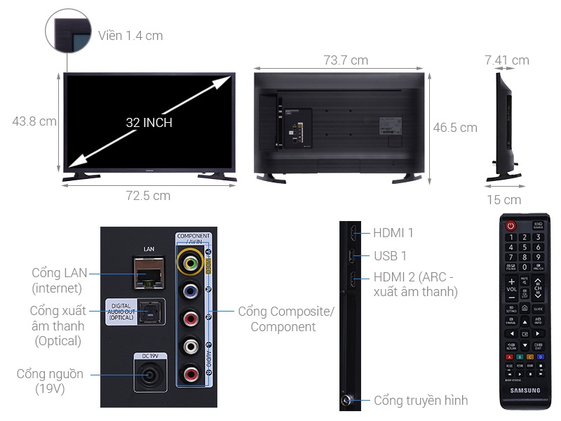 Tivi Samsung 32 inch là lựa chọn ấn tượng cho không gian phòng khách, phòng họp nhỏ, phòng làm việc hay treo tường ở phòng ngủ.