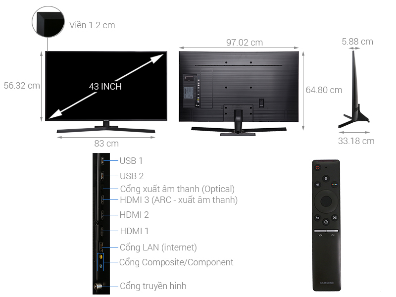 Tivi Samsung UA43NU7800KXXV đi kèm Remote đa nhiệm (One Remote) thông minh, điều khiển được nhiều thiết bị như: Loa Sound Bar, dàn âm thanh, đầu Blu-ray...