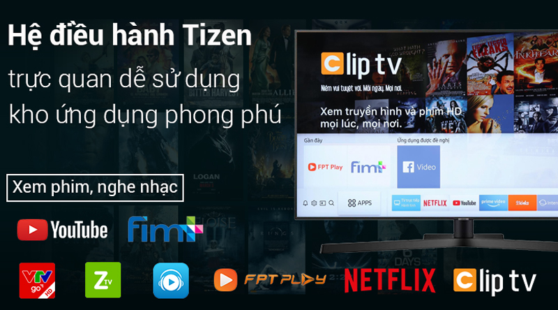 Hệ điều hành Tizen trên Smart tivi Samsung có giao diện thiết kế đẹp, trực quan, dễ sử dụng cùng nhiều ứng dụng giải trí hấp dẫn: Zing MP3, FPT Play, Trình duyệt web, Youtube… để bạn thoải mái trải nghiệm những chương trình giải trí lôi cuốn, tận hưởng những phút giây nghỉ ngơi thư giãn thú vị.