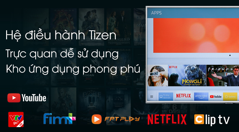 Hệ điều hành Tizen OS trên tivi Samsung UA50RU7400KXXV có giao diện trực quan, dễ sử dụng, tích hợp nhiều ứng dụng giải trí hấp dẫn như: YouTube, Netflix, FPT Play, Fim+,... đáp ứng nhu cầu giải trí đa dạng của mỗi thành viên trong gia đình, đem đến cho bạn những phút giây nghỉ ngơi giải trí thư giãn.