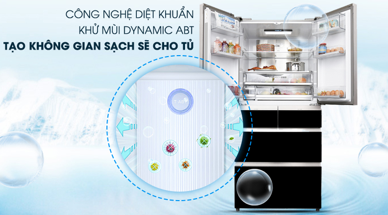 Sản phẩm có chức năng diệt khuẩn và khử mùi Dynamic ABT tiên tiến, giúp loại bỏ các vi khuẩn có hại, nấm mốc và các mùi khó chịu của thực phẩm, giúp cho thực phẩm được bảo quản tươi ngon và trọn hương vị ban đầu.