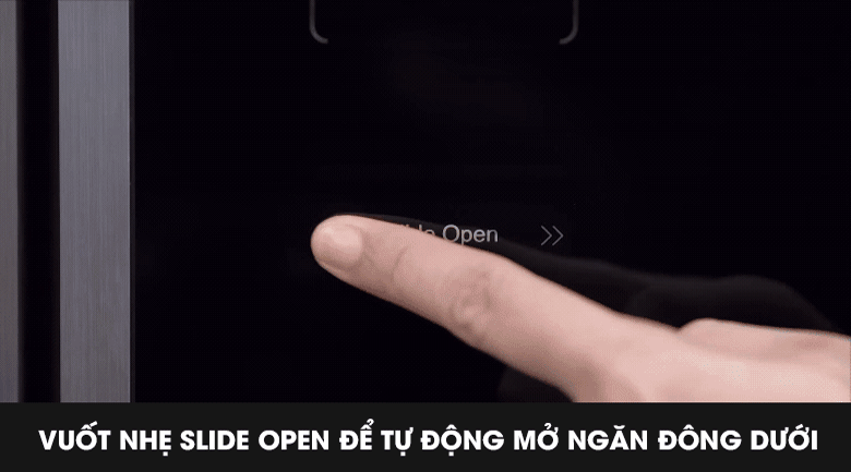 Ngăn đông dưới được trang bị hệ thống cảm ứng mở tự động chỉ với thao tác vuốt nhẹ, dễ dàng mở tủ ngay cả khi ngăn chứa nhiều đồ nặng.