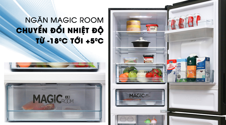 Với ngăn tùy chỉnh nhiệt độ Magic Room, bạn có thể tùy chỉnh thay đổi nhiệt độ ngăn từ -18 đến 5 độ C chuyển đổi thành ngăn đông, ngăn lạnh hoặc ngăn đông mềm đáp ứng nhu cầu sử dụng đa dạng, bảo quản phong phú các loại thực phẩm của mỗi gia đình.