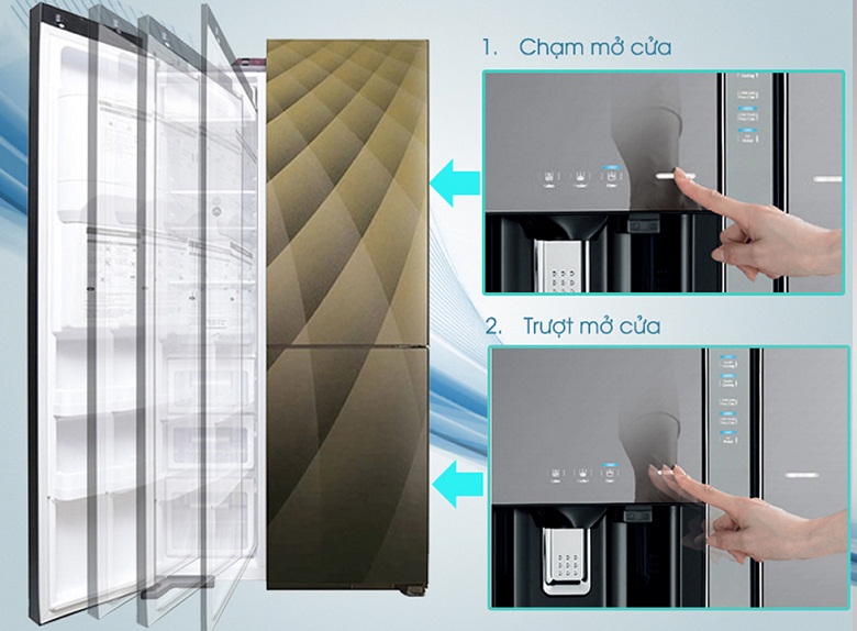 Cảm biến sẽ phát hiện được người đến gần tủ lạnh và tự động hiển thị bảng điều khiển để bạn dễ dàng thao tác, sử dụng. Khi không có người sẽ tự ẩn đi vô cùng thông minh, tiện ích.