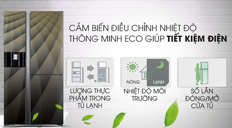 Cảm biến Eco có khả năng nhận biết được nhiệt độ bên ngoài phòng, lượng thực phẩm trong tủ và tần suất mở đóng tủ, từ đó điều chỉnh công suất linh hoạt, duy trì độ lạnh thích hợp cho tủ lạnh. Theo đó vừa đảm bảo thực phẩm tươi ngon vừa giúp giảm lãng phí điện năng tiêu thụ.