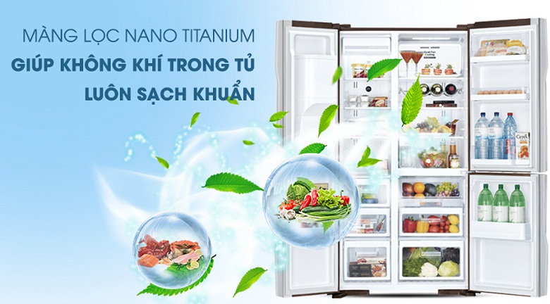 Tủ lạnh trang bị màng lọc Nano Titanium với chất xúc tác TiO2 giúp kháng khuẩn khử mùi, loại bỏ vi khuẩn có hại, cho thực phẩm bảo quản được tươi ngon lâu hơn, không bị biến chất, an toàn cho sức khỏe của bạn và gia đình.