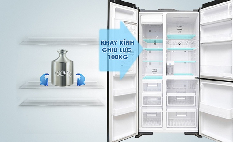 Tủ lạnh R-FM800AGPGV4X(DIA) thiết kế các khay kệ kính chịu lực tốt, chắc chắn, giúp xếp đặt được lượng lớn thực phẩm mà không lo bị vỡ. Khay kính cũng dễ dàng hơn khi vệ sinh, làm sạch.