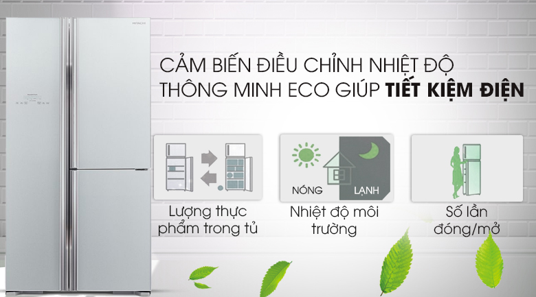 Sự kết hợp giữa công nghệ Inverter và cảm biến theo dõi Eco, tủ lạnh Hitachi có thể tự động điều chỉnh chế độ và nhiệt độ làm lạnh theo lượng thực phẩm có trong tủ, theo sự thay đổi nhiệt độ môi trường và theo thói quen sử dụng của gia đình bạn một cách hợp lý, từ đó giúp bạn tiết kiệm điện tối đa.