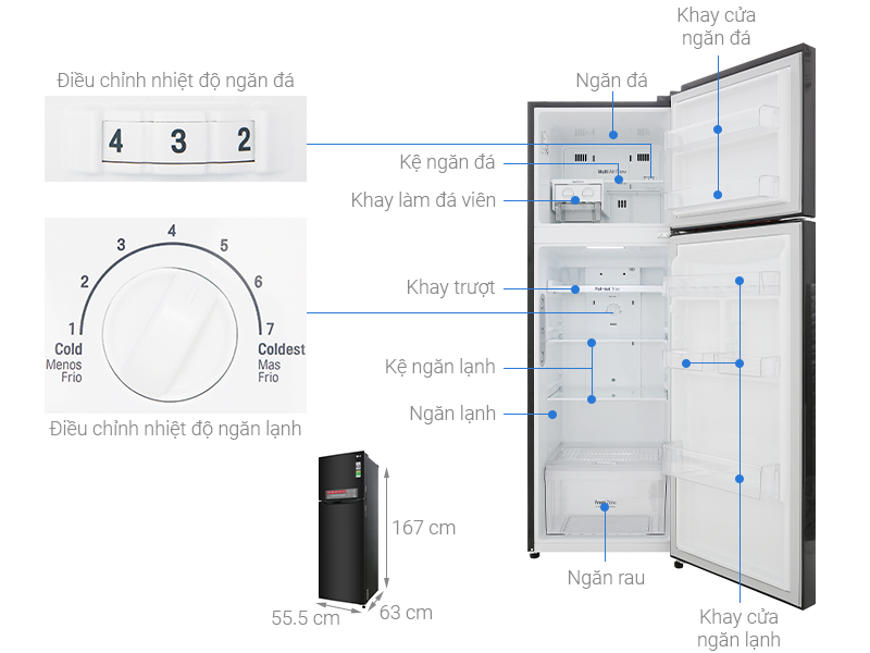 Tủ lạnh LG 255 lít phù hợp sử dụng với những gia đình từ 2 - 3 thành viên.