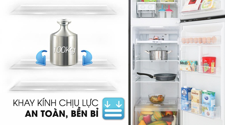 Tủ lạnh LG GN-M255BL thiết kế các khay kính chịu lực bền chắc, đáp ứng tốt nhu cầu bảo quản nhiều loại thực phẩm có kích thước, trọng lượng khác nhau. Khay kính cũng dễ dàng hơn khi vệ sinh, làm sạch. Hệ thống đèn Led chiếu sáng tiết kiệm điện năng.