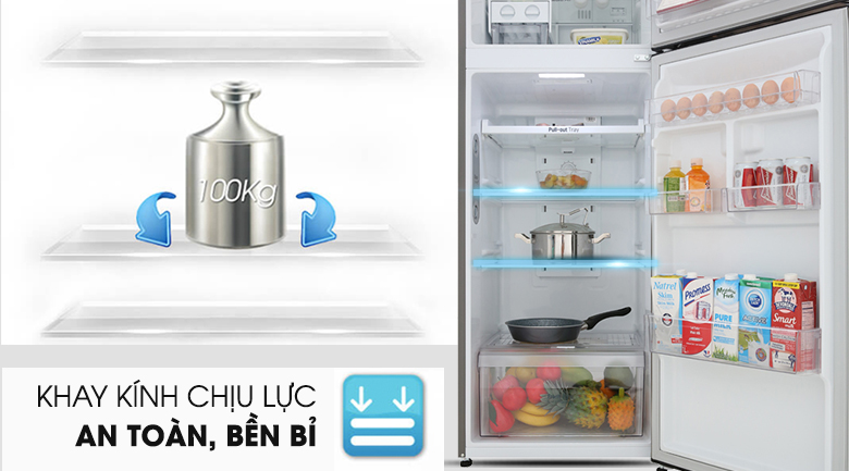 Tủ lạnh LG GN-M315PS thiết kế các khay kính chịu lực bền chắc, đáp ứng tốt nhu cầu bảo quản nhiều loại thực phẩm có kích thước, trọng lượng khác nhau. Khay kính cũng dễ dàng hơn khi vệ sinh, làm sạch.